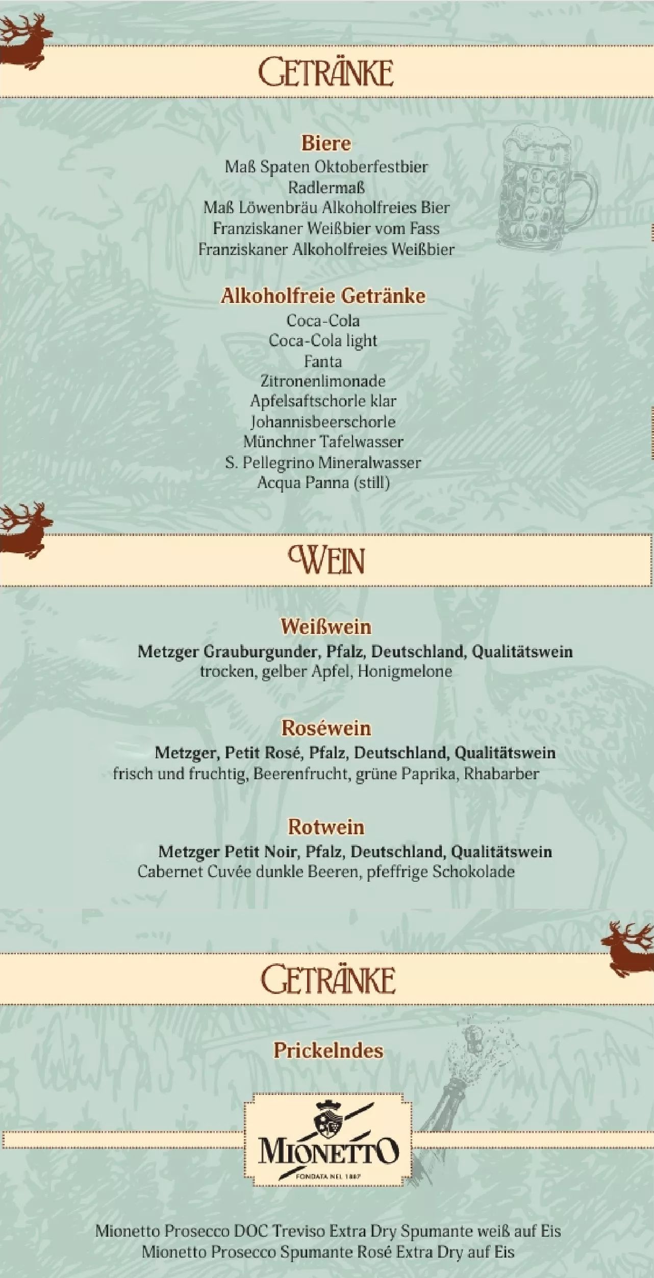 Getränkekarte & 3-Gänge-Menü